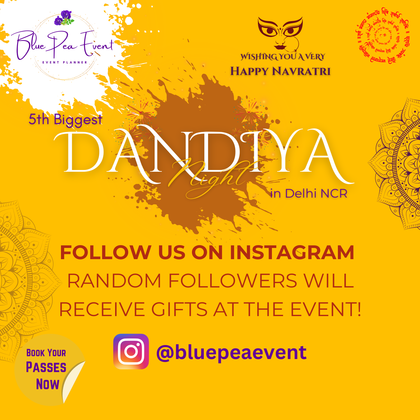 Get ready to immerse yourself in a vibrant evening of color, rhythm, and joy at the 5th Biggest Dandiya Night 2024! in Noida /Greater Noida / Delhi NCR This year, we are thrilled to kick off the festivities with the MAA Durga Aarti, setting the tone for a night of traditional dance and cultural celebration.